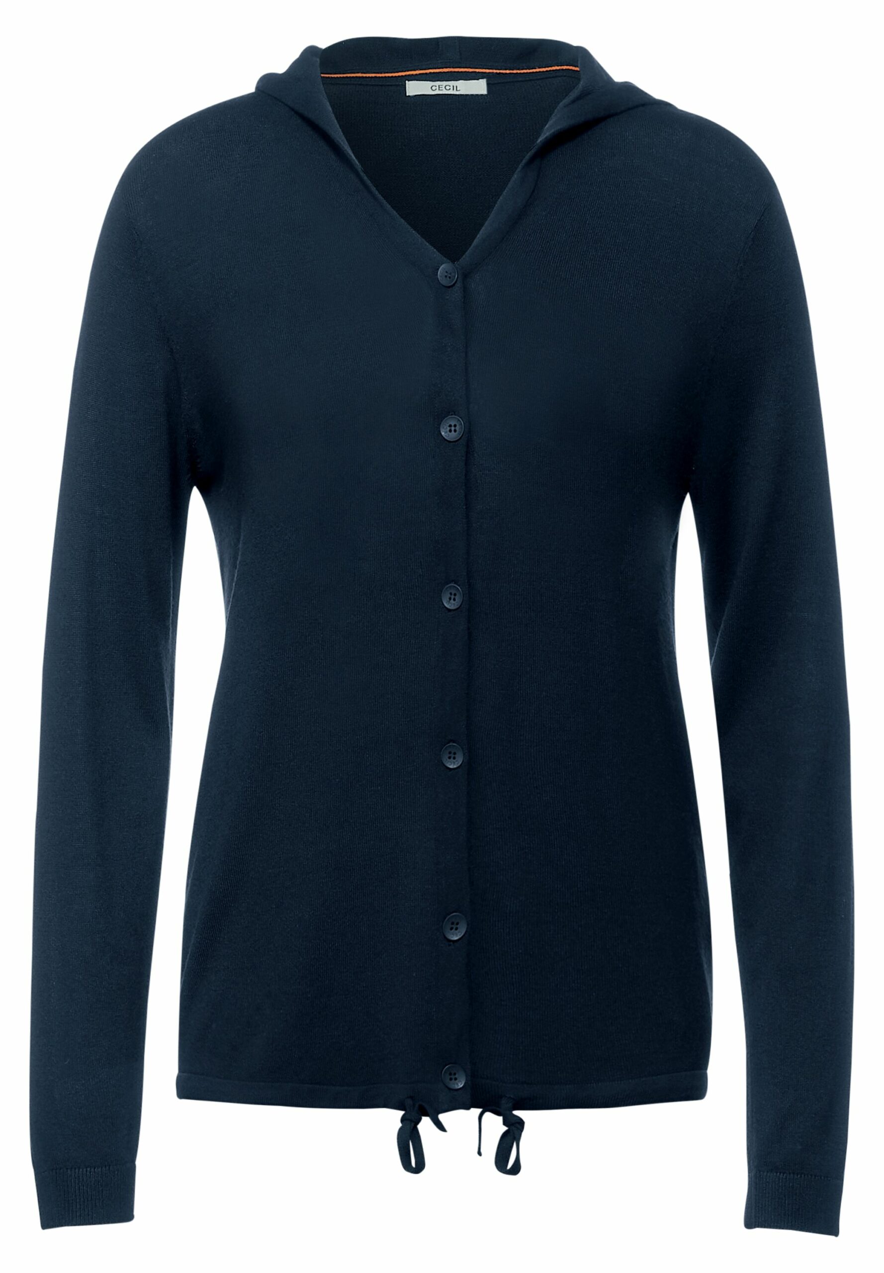 Willkommen in der Wohlfühlzone! Legerer Cardigan von CECIL in Unifarbe. Der sportliche Hoodie Style zeigt sich trendstark mit Kapuze und Tunnelzugband im Saum. Die bequeme Knopfleiste und das softe Material machen den Cardigan zu einem Lieblingsteil.