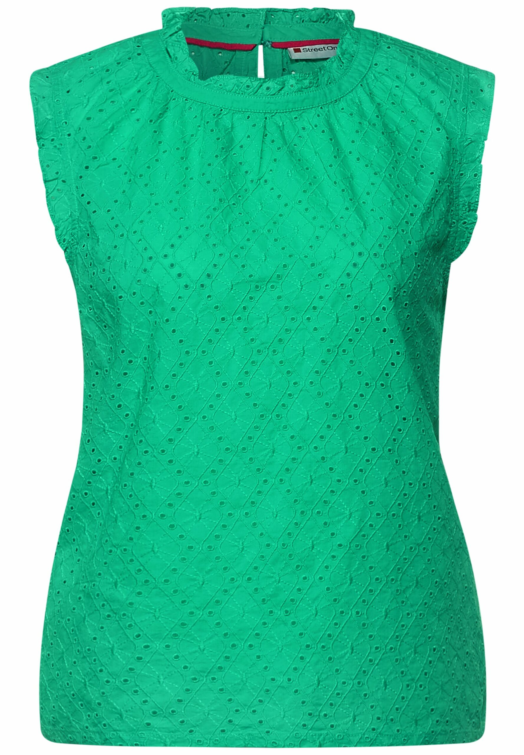 Street One Blusentop, gerüschter Kragen, Unifarbe, kurze Flügelärmel, Lochmuster